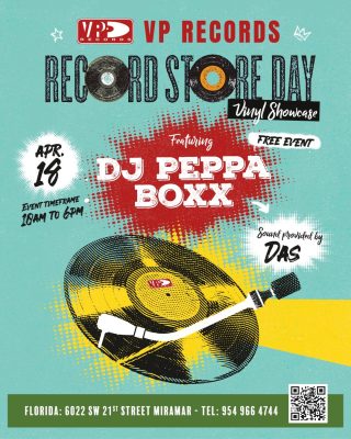 In Miramar, the VP Records retail location (6022 SW 21st Street) runs from 10 a.m. to 6 p.m., led by DJ Peppa Boxx with sound provided by DAS.